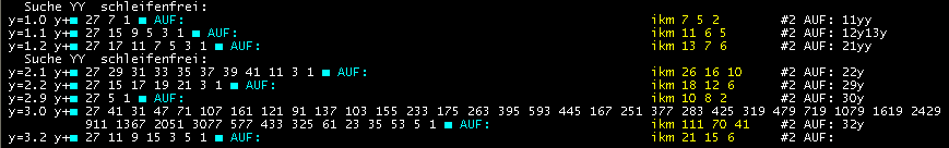 - Für y>4/3 bis y<10/3 sind die 'auf-oder abgerundeten' Folgen - 'primfallbedingt' - schleifenfrei.
